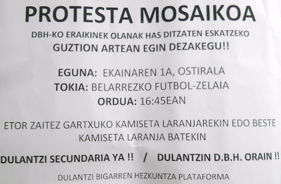 La Plataforma Secundaria Dulantzi, para solicitar el comienzo de las obras del edificio de la ESO a convocado un Mosaico Protesta, en día 1 de Junio. en el campo de futbol de hierba de Dulantzi a las 16:45 de la tarde.