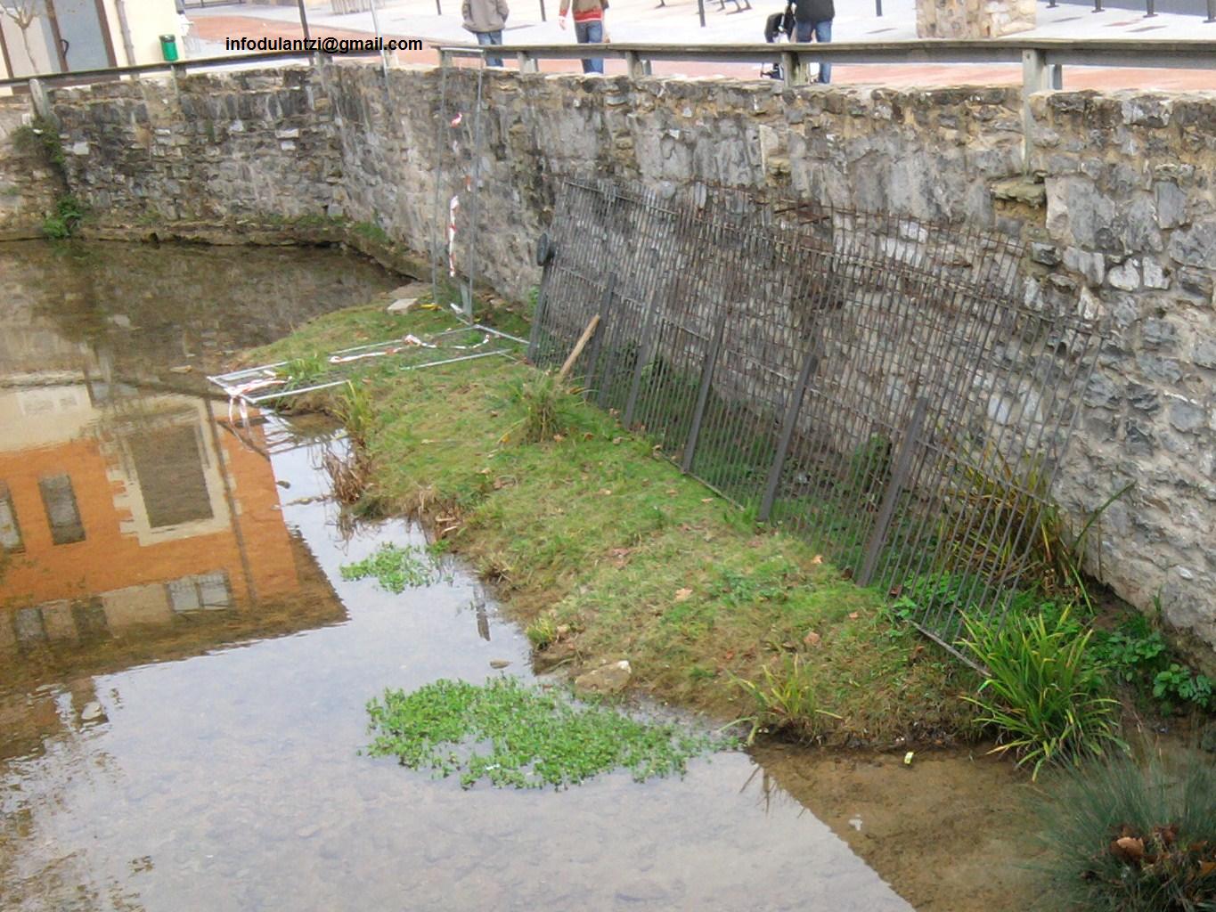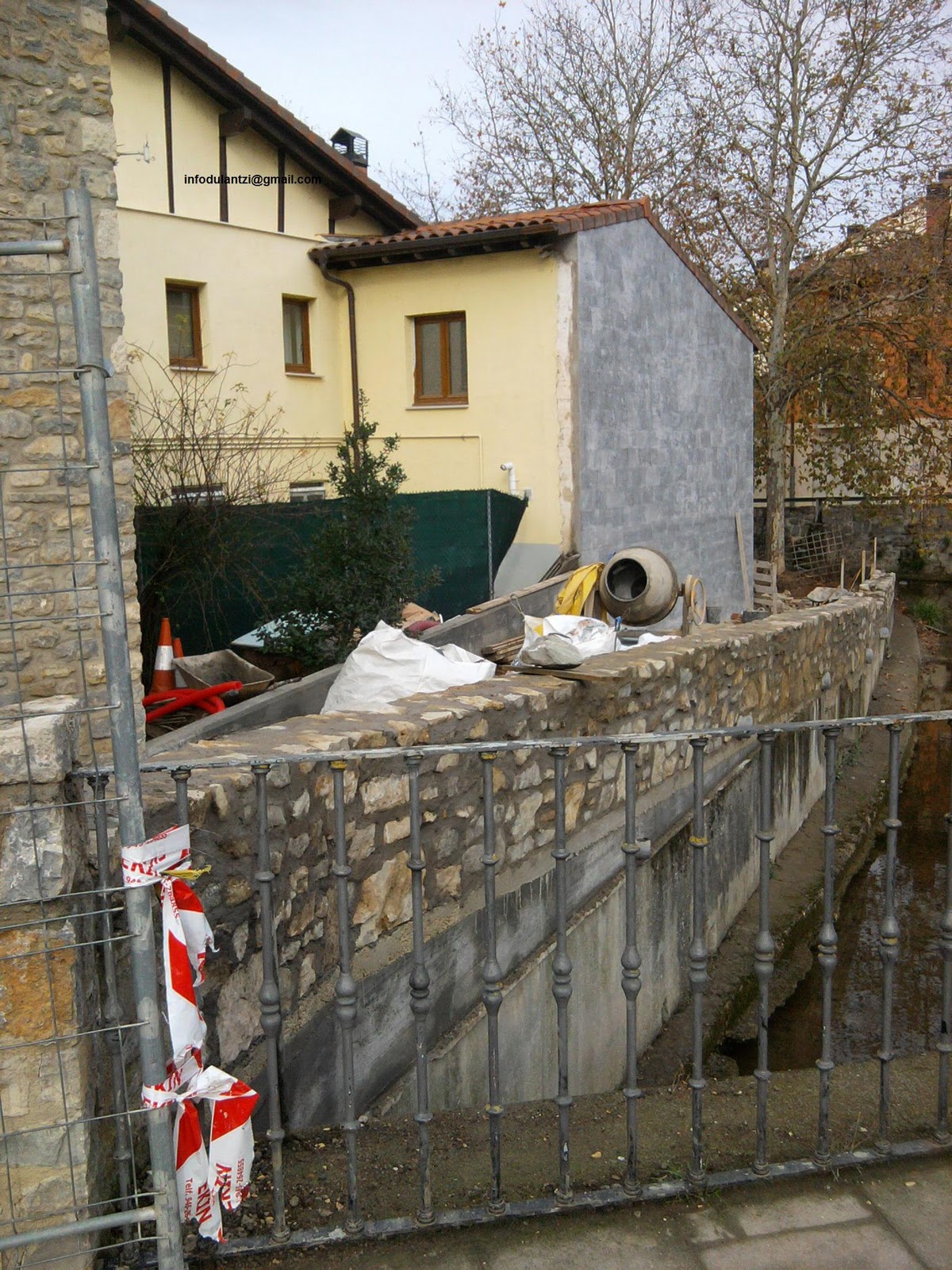 Continúan las obras en la calle Ibaiondo, mientras los vecinos y vecinas están a la espera de ver si la altura que le dan al muro es la adecuada para que el río Alegría no se salga en el tramo donde estaba el puente de madera