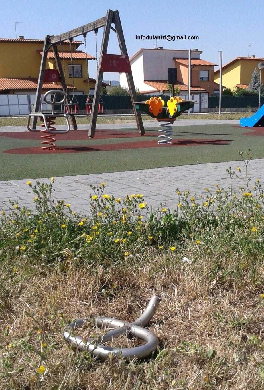 columpios rotos, jardines llenos de suciedad.